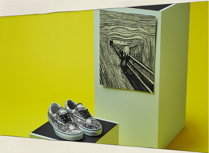 今年9月底Vans与纽约曼哈顿的现代艺术博物馆(Museum of Modern Art)联名系列首拨产品亮相,这个月迎来第二拨新品的发售。这个联名系列甄选了萨尔瓦多·达利、克劳德·莫奈、爱德华·蒙克等多位艺术家的作品。其中,emoji表情包的原型、爱德华·蒙克的《尖叫》是本月亮相新品中的一大亮点。