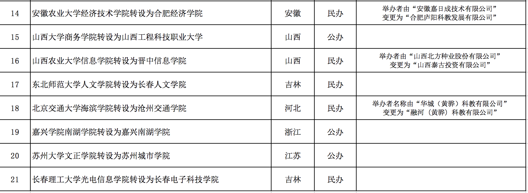 教育部拟同意21所独立学院转设为独立本科高校