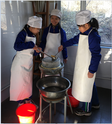 玉泉小学的学生们在磨豆浆