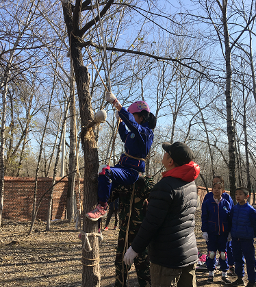 玉泉小学的一名女生在爬树