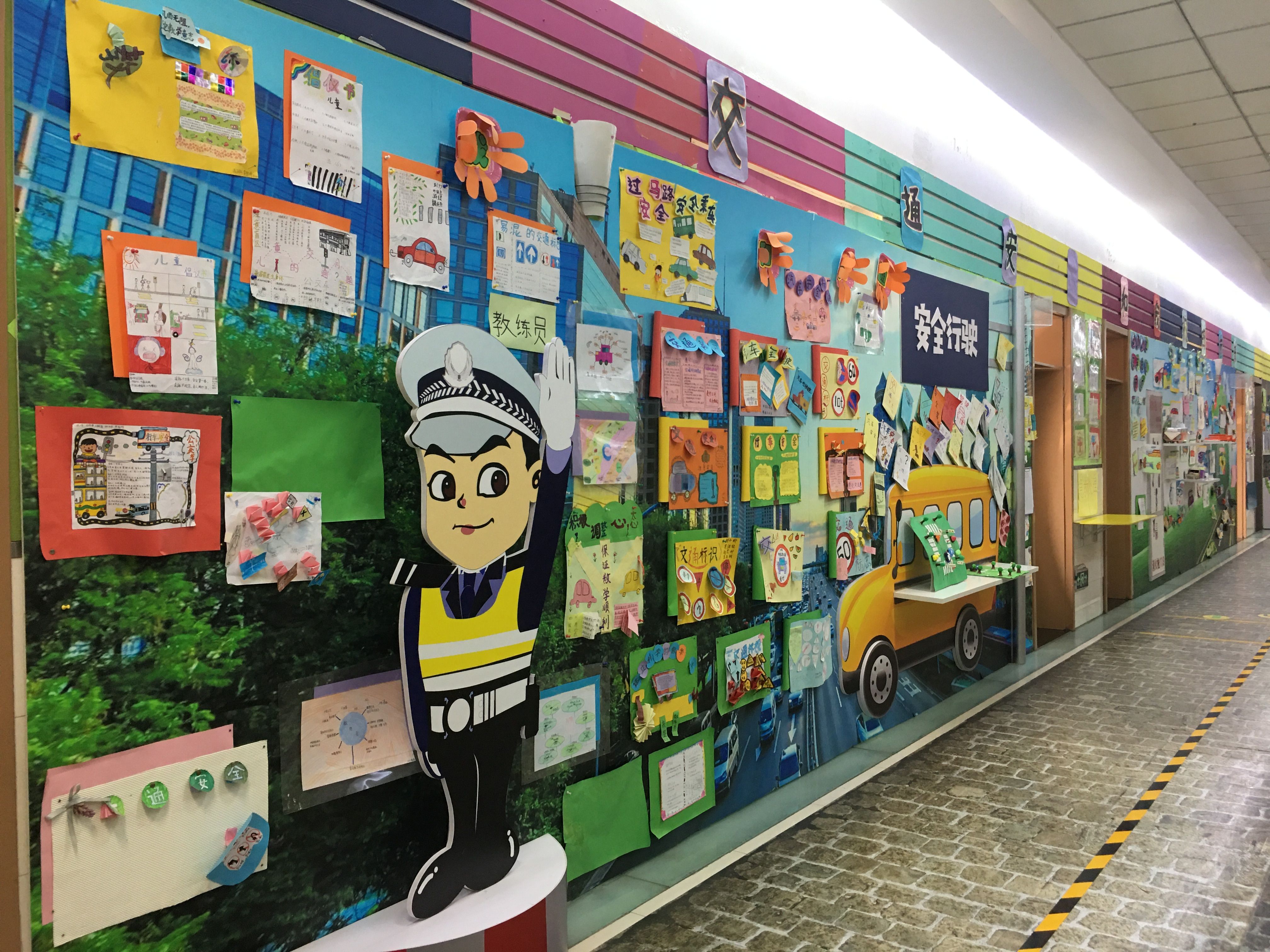 呼家楼中心小学教学楼楼道两侧展示了学生PDC项目成果