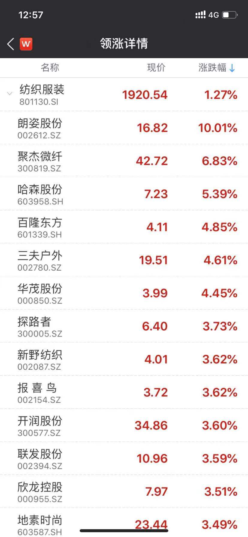 申万纺织品指数上涨1.27%,相关概念股中有小部分出现下跌,其中朗姿股份(002612)、聚杰微纤(300819)、哈森股份(603958)涨幅5%以上,朗姿股份(002612)涨停。太平鸟(603977)、星期六(002291)、起步股份(603557)等10只个股出现下跌。