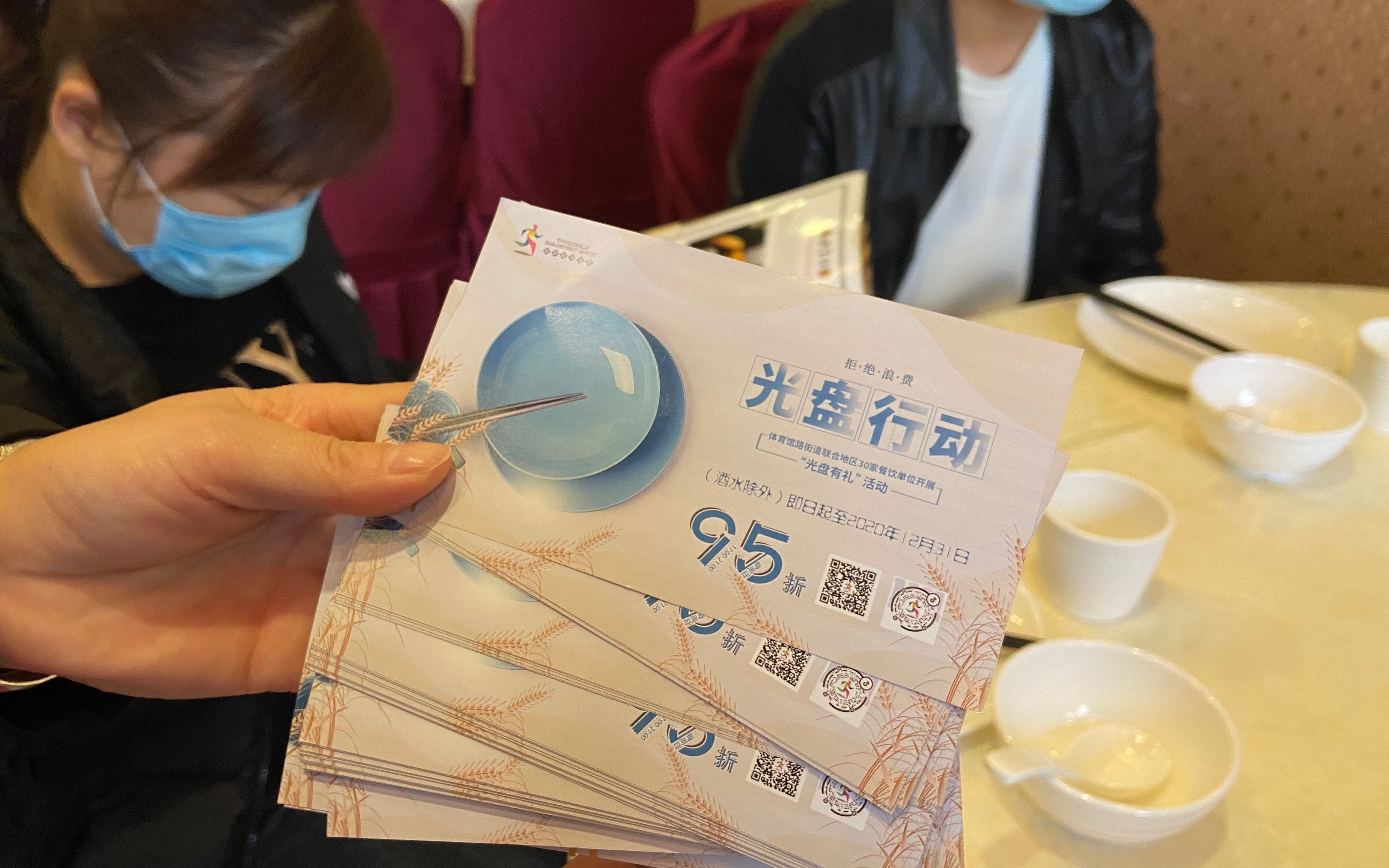 新京报快讯(记者 李玉坤)近日,北京市东城区体育馆路街道联合地区30家餐饮单位印制3万张打折券、代金券用于鼓励光盘的顾客。