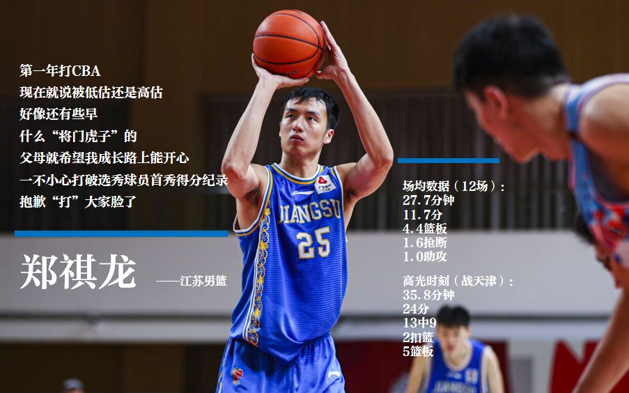 今年CBA选秀名单公布之初,郑祺龙的名字并不起眼。但从那之后,他仿佛拿到了“开挂”男主的剧本:先是随清华男篮夺得CUBA总冠军,再到选秀大会以第5顺位加盟江苏男篮。职业生涯开启后,他首秀拿下20分,一举刷新选秀球员得分纪录。随着赛季进行,郑祺龙证明了那并不是昙花一现:第一阶段12场比赛,他有7场得分上双,能突能投,还有暴扣。