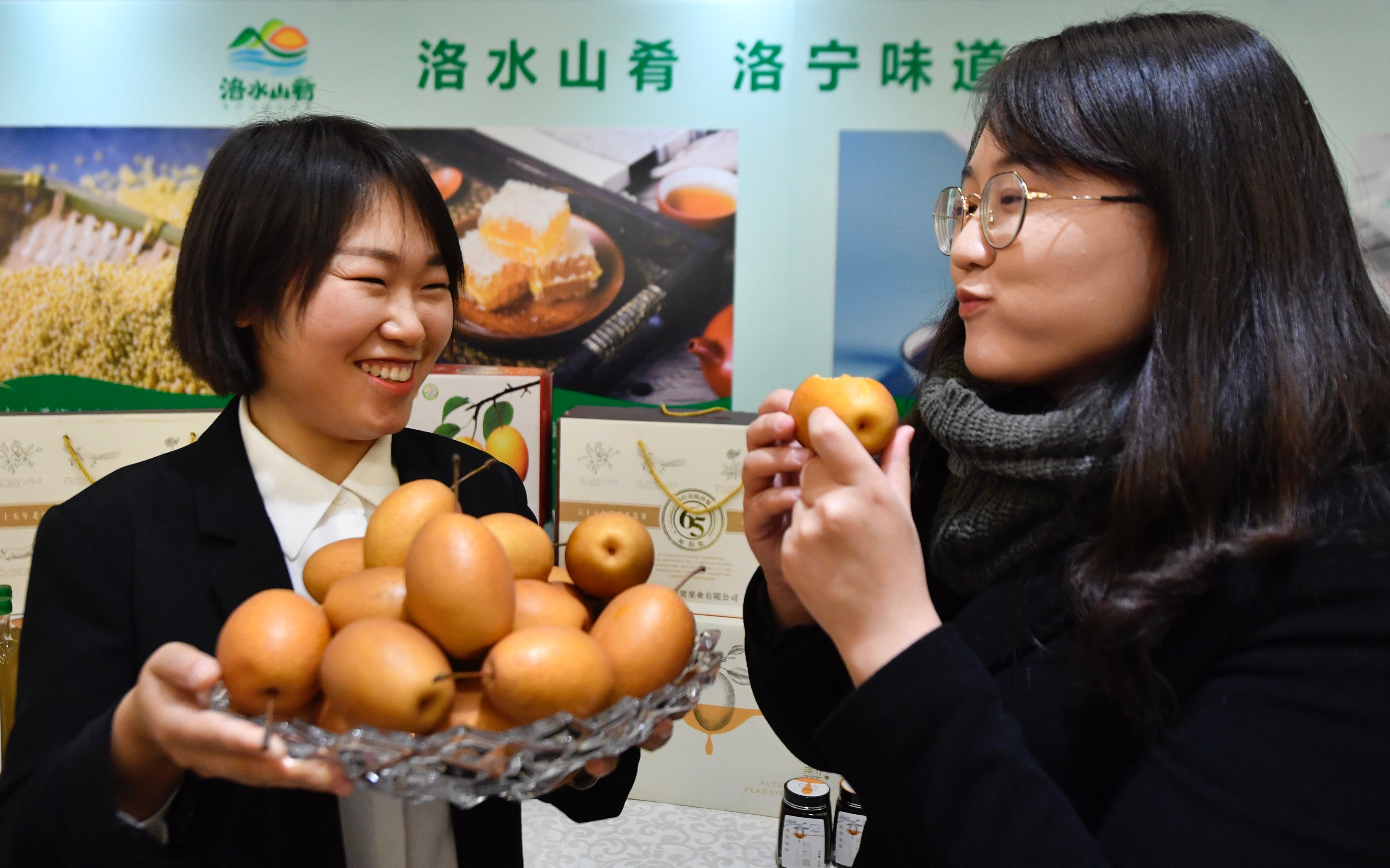 洛宁县位于河南省西部,是典型的山区农业县,农产品特色优势明显,是天然的水果适栽区。洛宁县县长周东柯介绍,洛宁县有金珠沙梨、上戈苹果、东宋樱桃等一大批特色优质农产品。周东柯介绍了金珠沙梨的多种吃法,尤其蒸熟吃味道更佳,“适合老人、小孩食疗,有润肺止咳的功效。”
