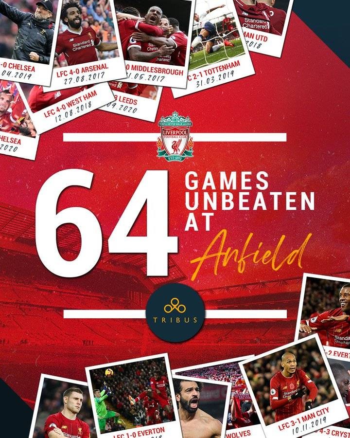 利物浦在主场已经连续64场不败,这也是他们的队史新纪录。这64场比赛中,红军取得了53胜11平的战绩。