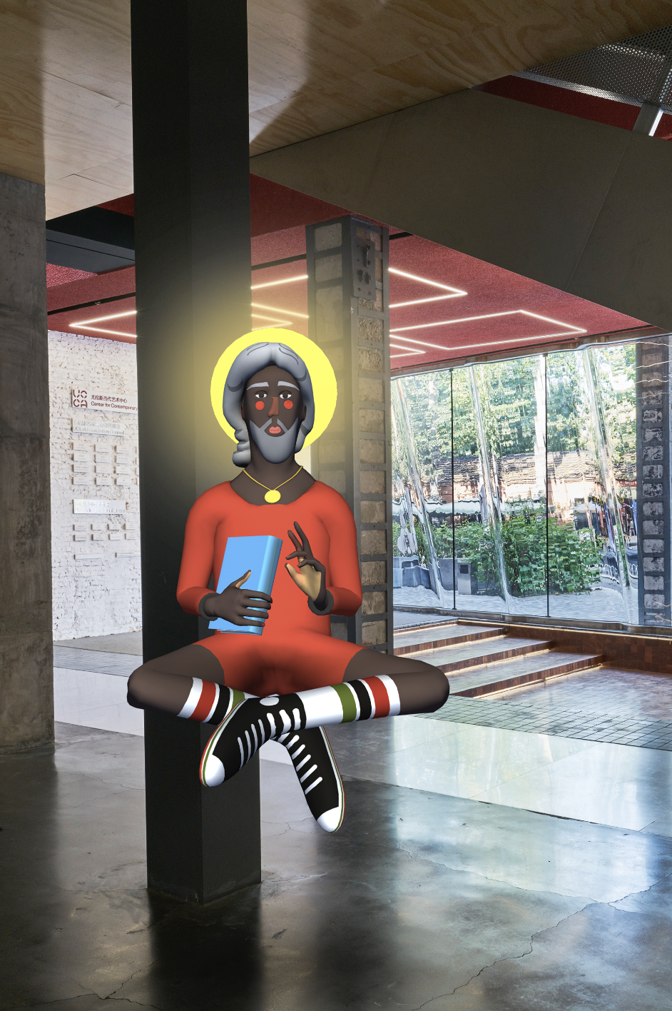 本次展出的作品丰富而多元,从数字雕塑到充满叙事戏剧性的卡通人物和动画场景,这些分布于UCCA公共区域及其周边的作品,既真实存在又裸眼不可见,在为美术馆增添独特艺术氛围的同时,亦为观众打开一个几近虚幻的奇妙新世界。值得一提的是,本次在北京展出的作品没有经过运输,亦无需艺术家及其团队来京协助布展。虽然对于一场展览来说,这些环节至关重要且无法被直接取代,但对于呈现艺术的其他可能性仍值得我们深入探索,这不仅是面对当前国际出行受限的短暂需求,从长远来看,更为生活在基础设施匮乏或远离文化中心的观众提供了走进艺术的新方式。