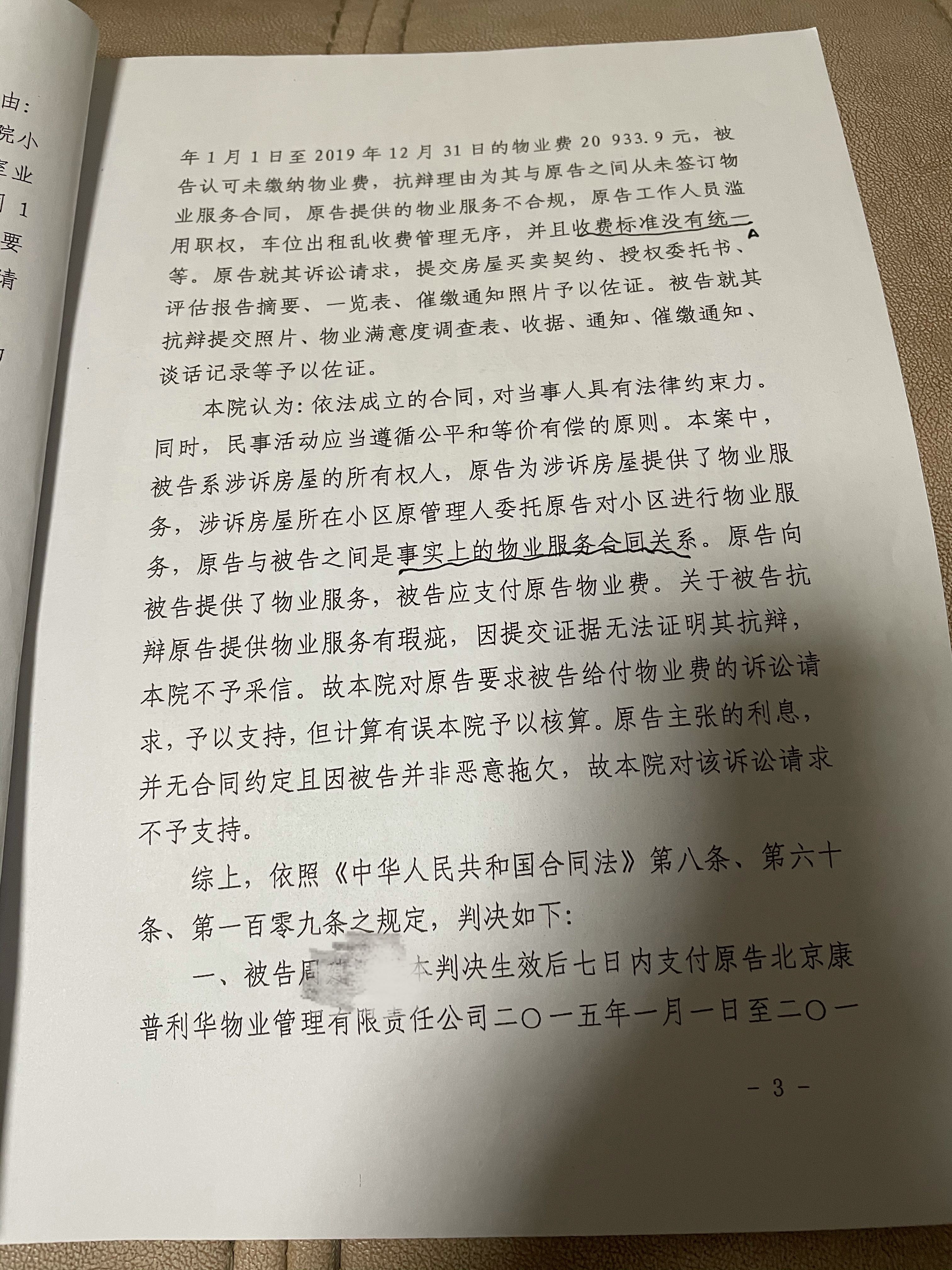 朝阳区人民法院10月21日发布的判决书显示,法院认为,原告向被告提供了物业服务,被告应支付原告物业费。对于原告主张的利息,并无合同约定且被告并无恶意拖欠,故判决对该诉讼请求不予支持。