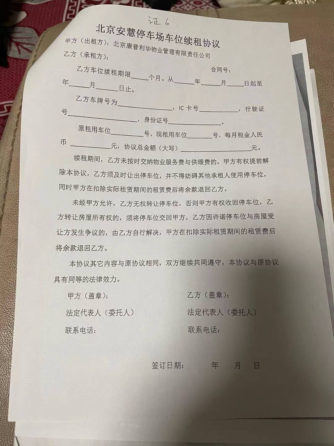 车位续租协议。受访者供图