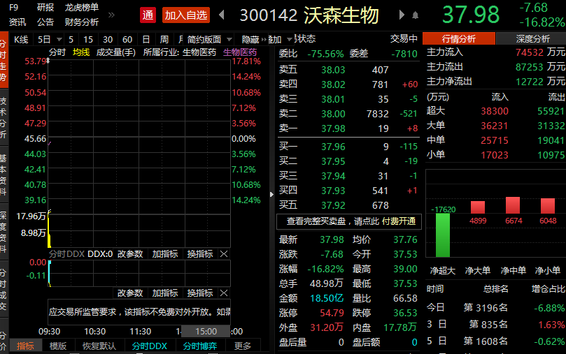 沃森生物开盘跌17% 转让上海泽润股权计划暂缓