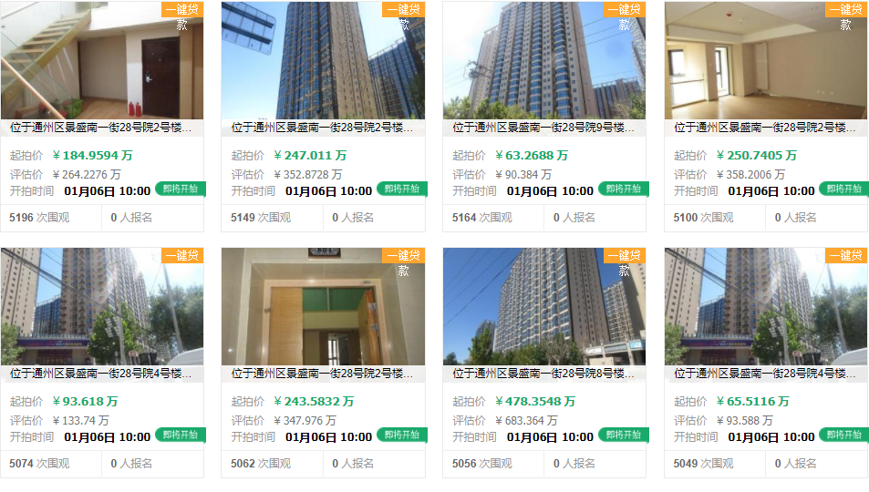 据了解,合生世界村小区位于北京通州区景盛南一街28号院,此次拍卖的47套房产包括门市房及商办房,目前每套房的围观人数都超过4000人,但仍无一人报名。