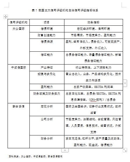 虽然我国信用评级机构评级指标体系内容有差异,分析方法和分析重点有所不同,但对宏观环境、行业周期和公司治理结构等基础因素,对公司盈利能力、现金流水平和财务结构等影响债务履约能力的财务因素的关注,是各评级机构所必须关注的共同点,对共同因素的关注大大强于对特别因素的关注。我国信用评级存在的问题,显然不主要来自于指标体系的设计和财务分析框架这些技术因素,而主要来自于一些制度性或环境性因素。