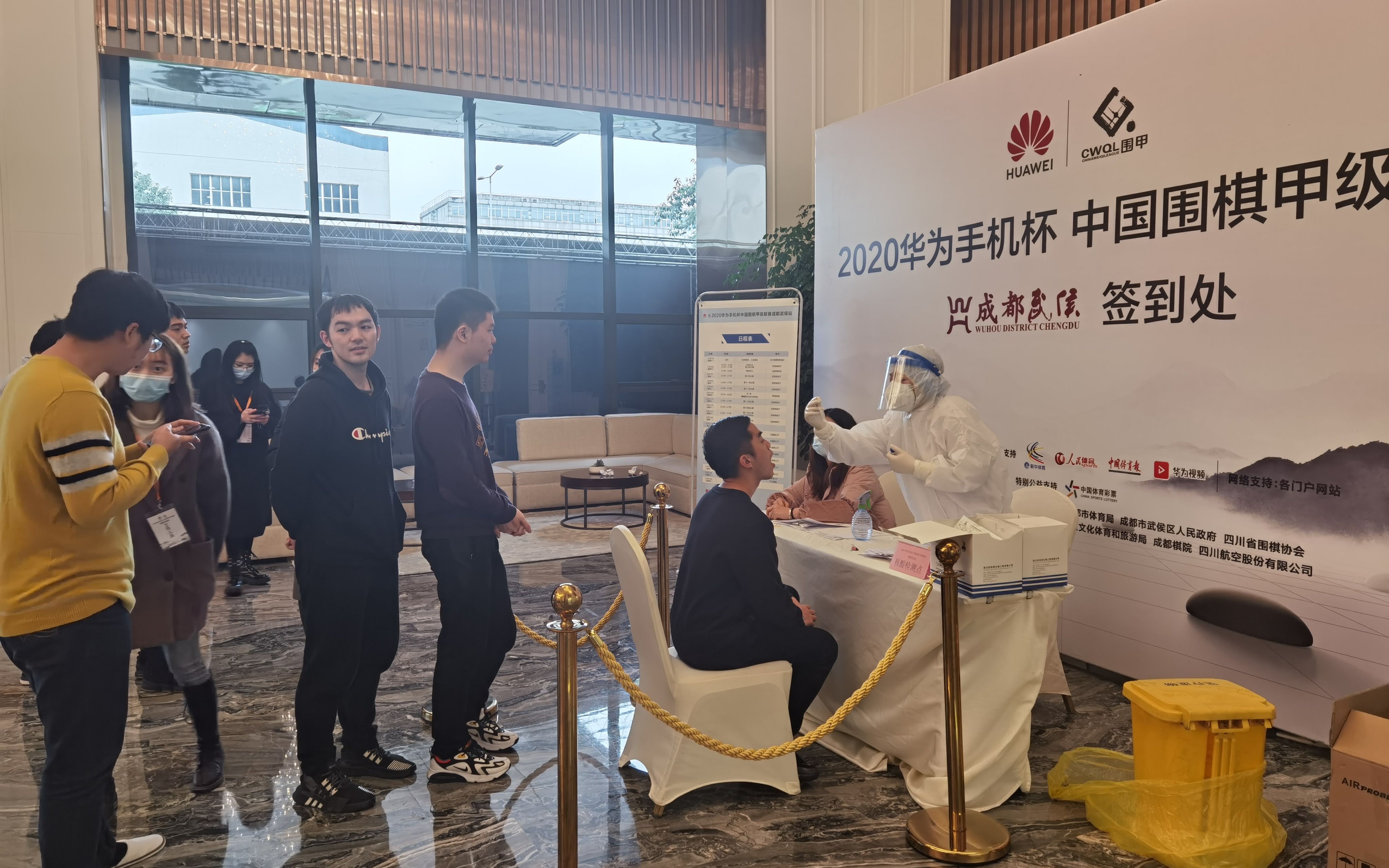 棋手和工作人员重新进行核酸检测。华学明 摄
