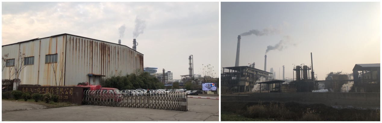 八一化工工厂的两条烟筒冒着烟,工人三三两两在厂区内作业……走在厂区周边,时不时能闻到一股酸酸臭臭的化学品味道,时强时弱,强烈的时候,即使戴着口罩也会让人感觉非常不适。