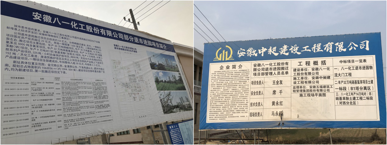 八一化工新厂位于淮上区沫河口工业园区,蚌埠市经信局曾于今年3月公开表示,八一化工新厂总投资约53亿元,分两期搬迁建设,一期搬迁项目固定资产投资超过22亿元,主要包括年产30万吨(一期15万吨)烧碱项目、年产30万吨氯苯(一期20万吨)、年产32万吨硝基氯苯项目(一期18万吨)等项目。