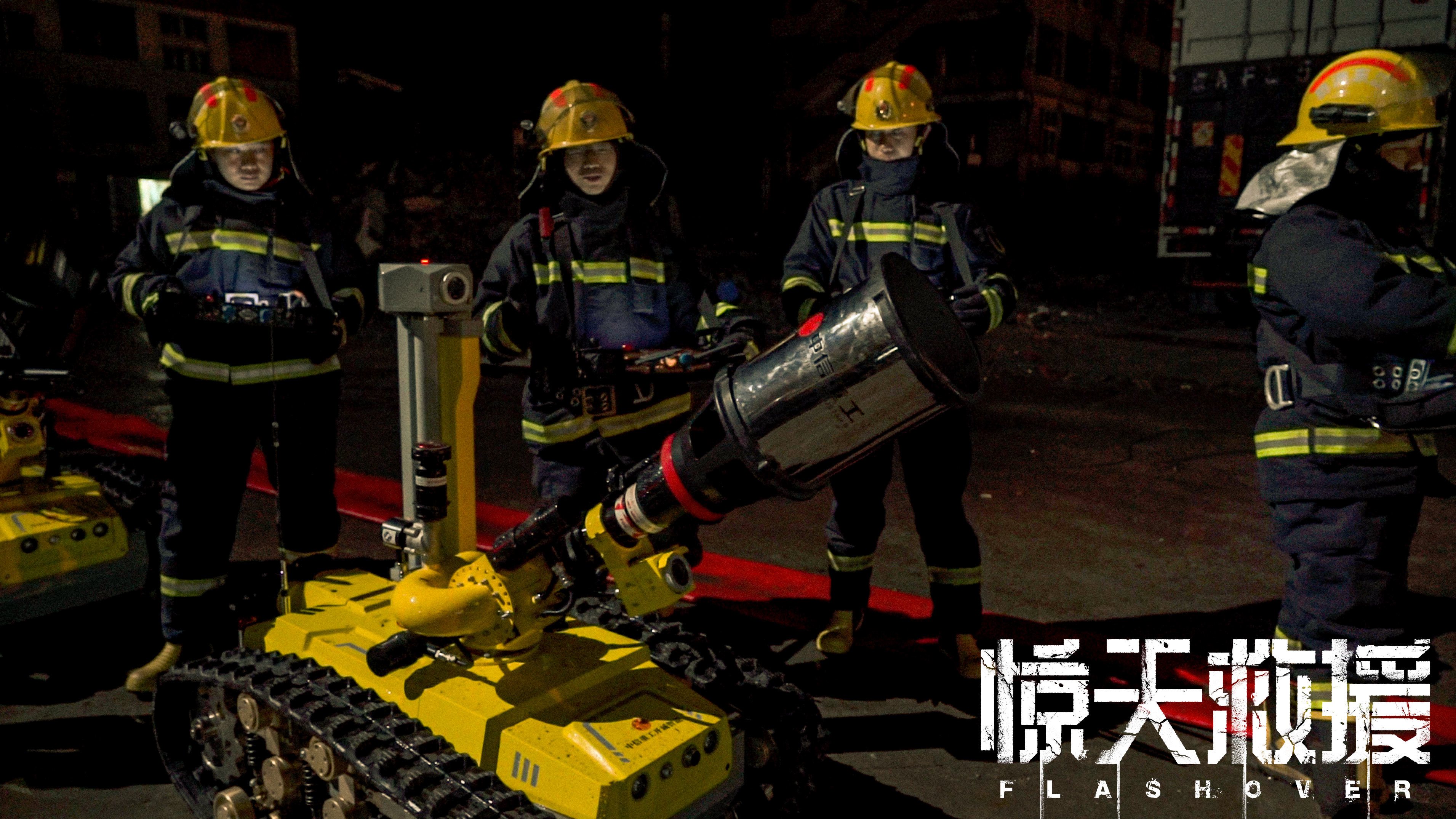 与杀青照一同曝光的还有一组幕后片场照, 中国先进科技应急救援装备如导弹消防车、救援机器人等将在影片中首次亮相。据悉,在电影筹备的两年时间里,得到了应急管理部消防救援局、江苏省委宣传部和江苏省消防救援总队的大力支持。剧组更是斥巨资实景打造了如盘山公路隧道、核心爆炸区等多处灾情现场。