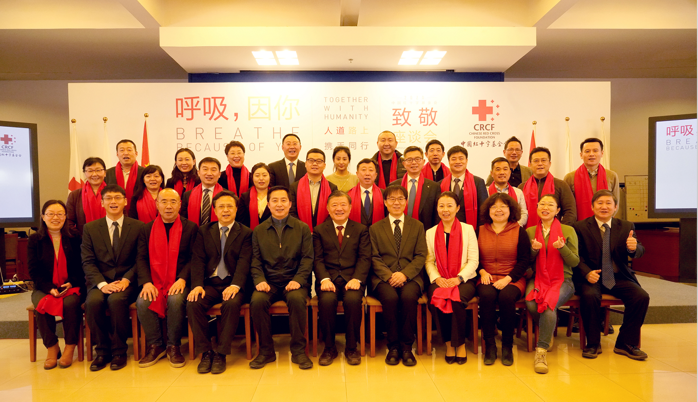 公益座谈会现场红十字会领导与受表彰企业代表合影留念