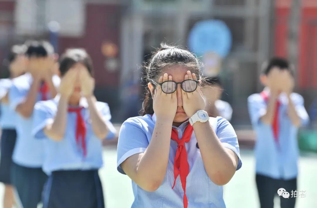 △ 2020年6月1日,丰台一小,同学们在操场做眼保健操。当天,北京市高一、高二、初一、初二以及小学六年级学生返校复课。