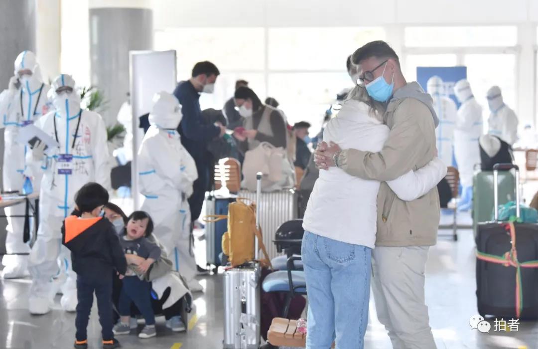 △ 2020年3月17日,新国展,北京东城区集散点,两名相拥的外籍人士。当时,北京市启用新国展作为首都机场全部国际及港澳台地区入境旅客的转运集散地,此集散地用于经机场检疫后未出现发热、咳嗽等症状的低风险人群临时集散。境外入境人员根据目的地分为北京及其他省区市地区,北京地区按照16个区分别设立临时集散点,其他省区市分别设立各省区市临时集散点。(点击跳转:新国展集散点直击:专人陪同登记,一周分流14595人)