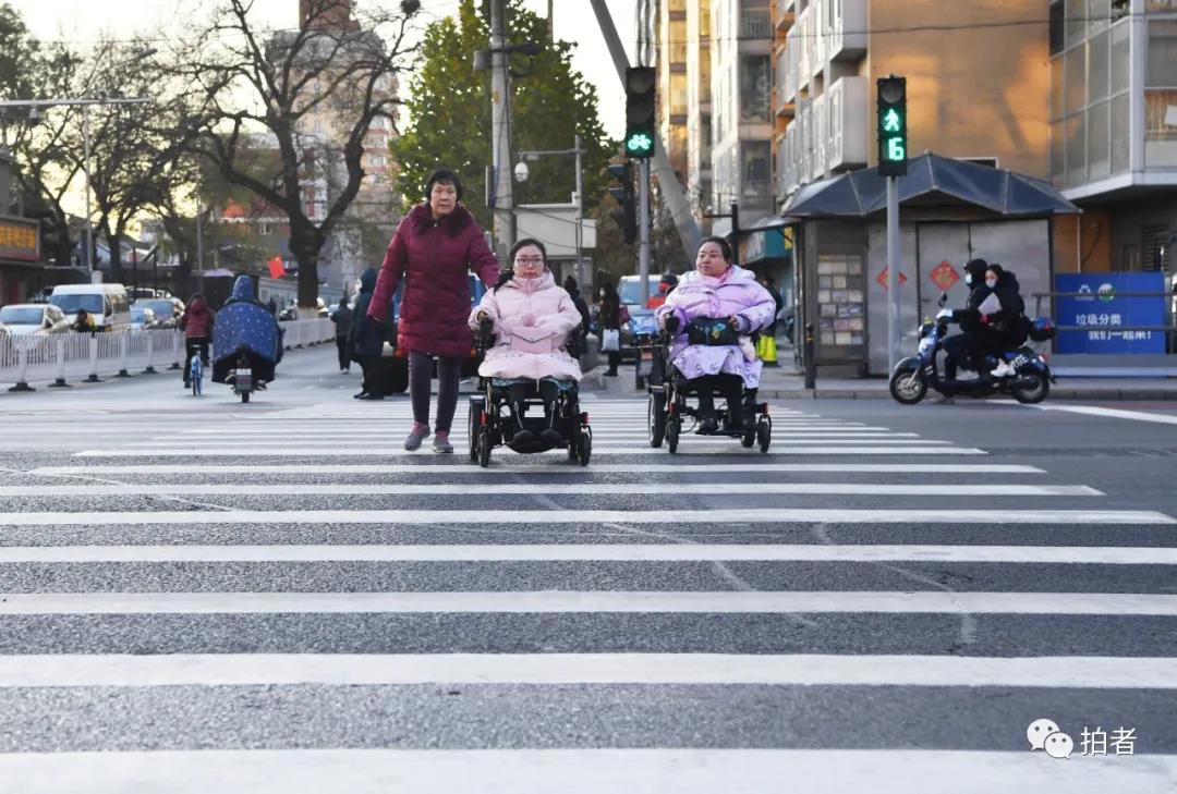 △ 2020年12月2日,海淀区苏州街,王芮、王燕姐妹俩操控着电动轮椅过马路。六十多岁的母亲郭青梅仍然不放心地紧紧跟随。十几年前,身患脊髓肌萎缩和神经肌肉性脊柱侧弯的“轮椅女孩”王芮(图左)从陕西来北京求医求学,以优异的成绩进入中国农业大学。如今,她成为了一名互联网教育创业者。(点击跳转:离开公主楼后,“轮椅女孩”的中关村创业梦)