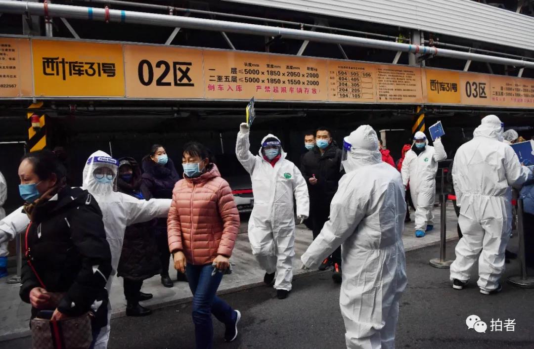 △ 2020年12月26日下午,西什库31号,西城区冷链及餐饮食品单位从业人员在排队等待核酸检测。当日,西城区什刹海地区启动对辖区内冷链及餐饮食品单位从业人员核酸检测。身穿防护服的工作人员在引导检测者。