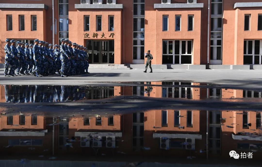 △ 2020年9月16日,昌平区马池口,北京大学2020级新生摘下口罩军训。