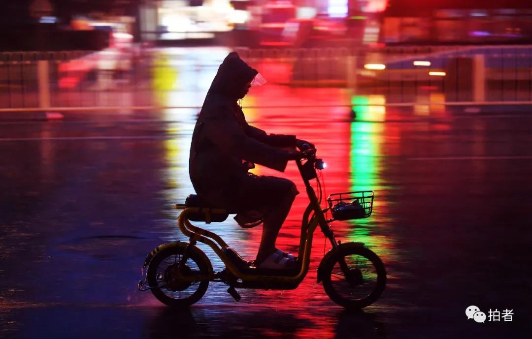 △ 2020年1月5日晚,北京下起小雪,朝阳北路,雪花静静挂上枝头。