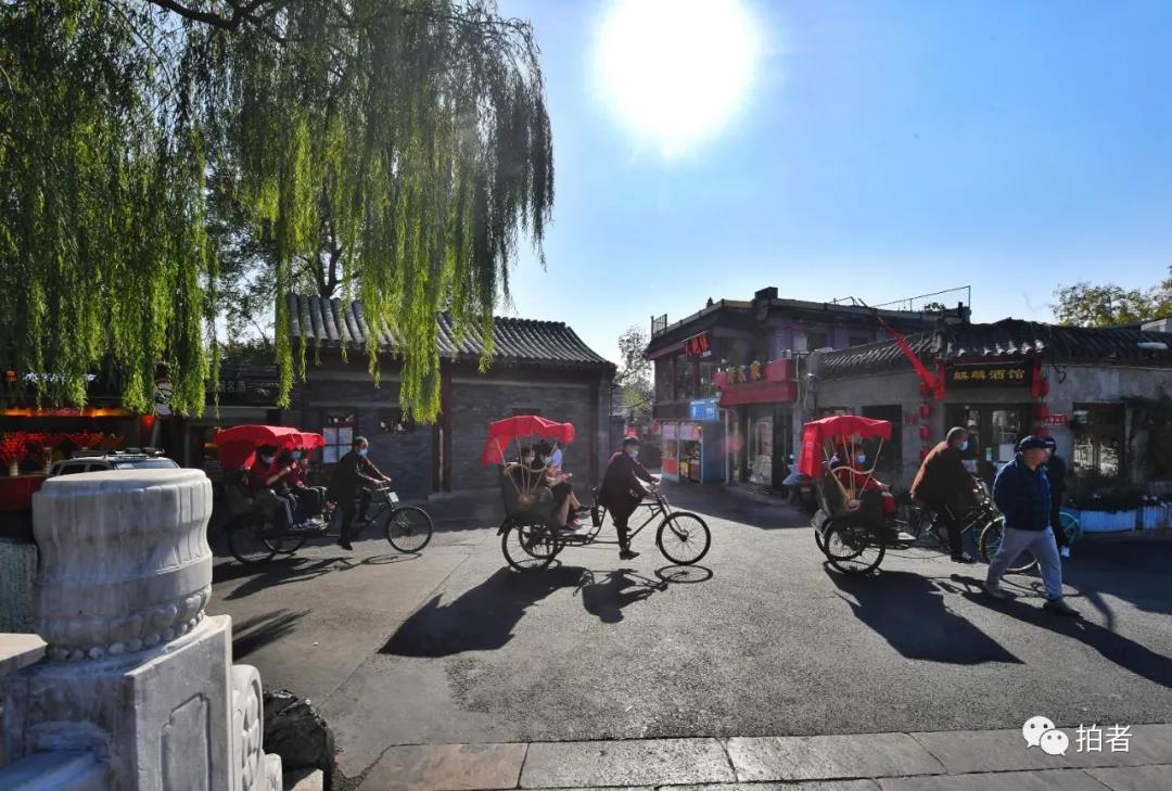 △ 2020年10月19日,几辆什刹海人力客运三轮车载客经过什刹海银锭桥。当天,停运9个月的什刹海人力客运三轮车胡同游正式回归。