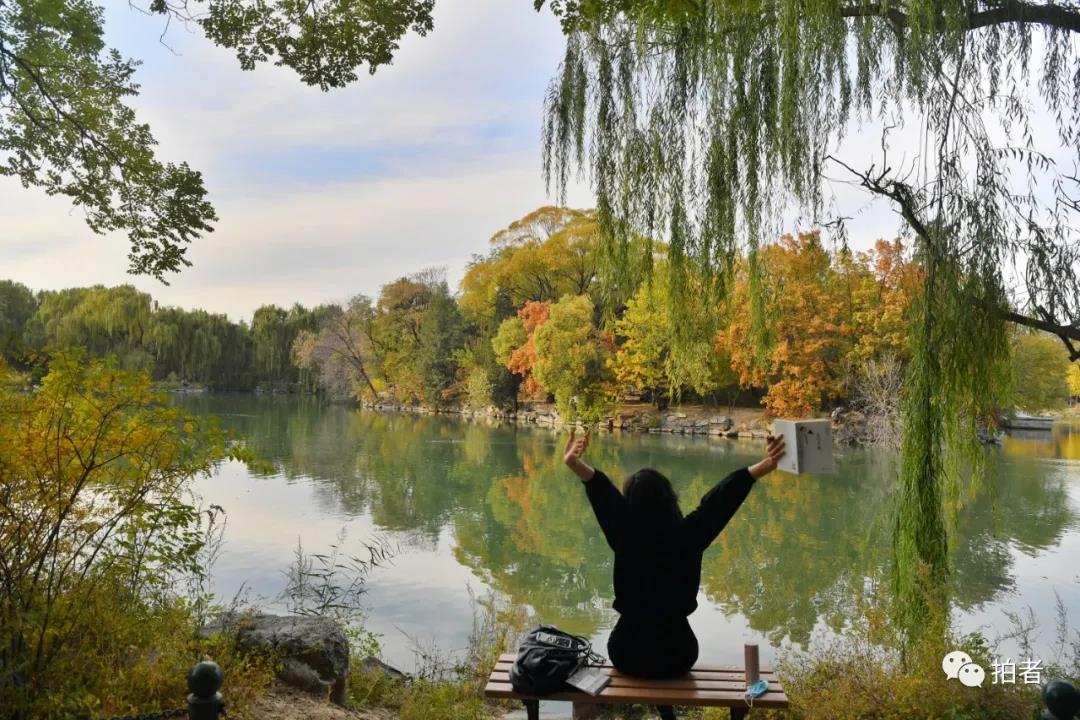 △ 2020年10月28日,北京大学,未名湖畔,看书的学生伸了个懒腰。