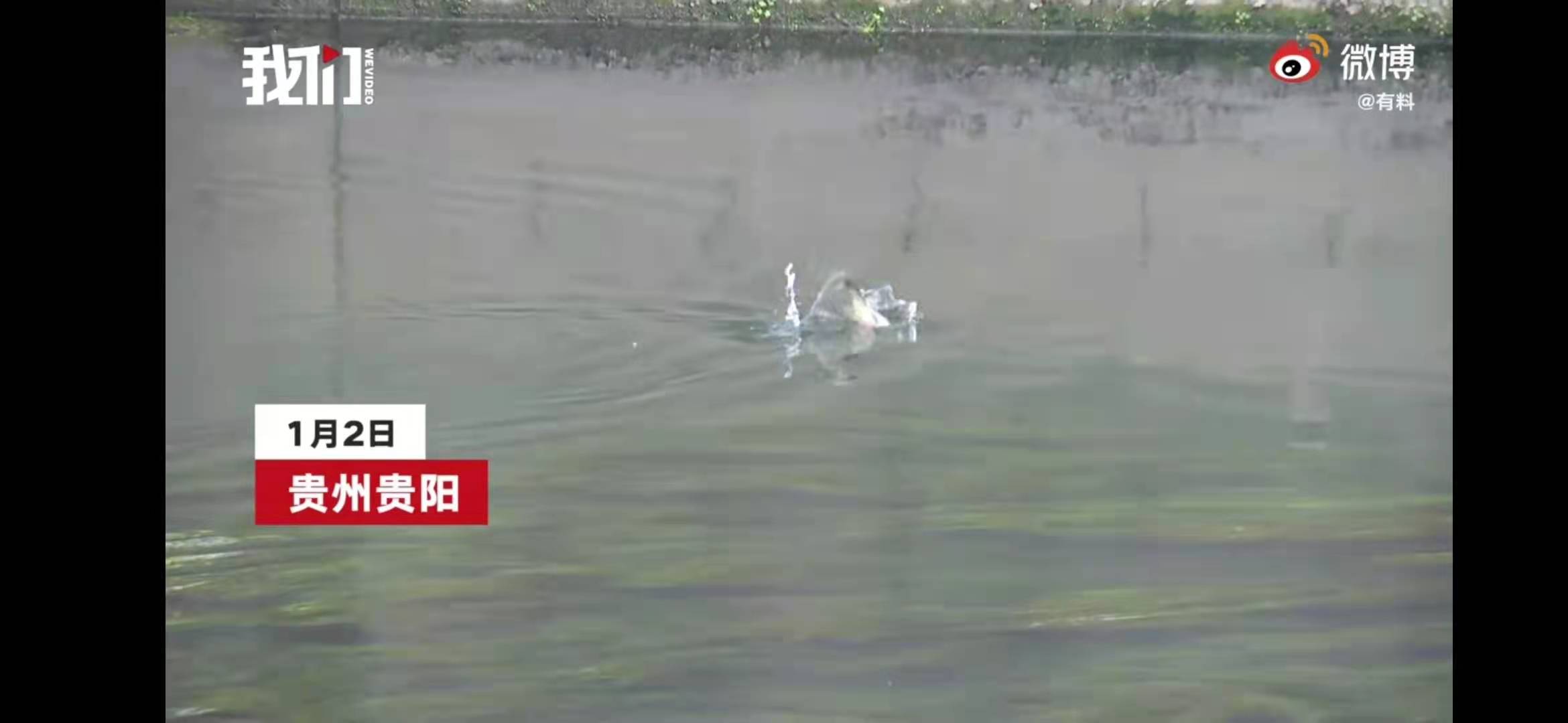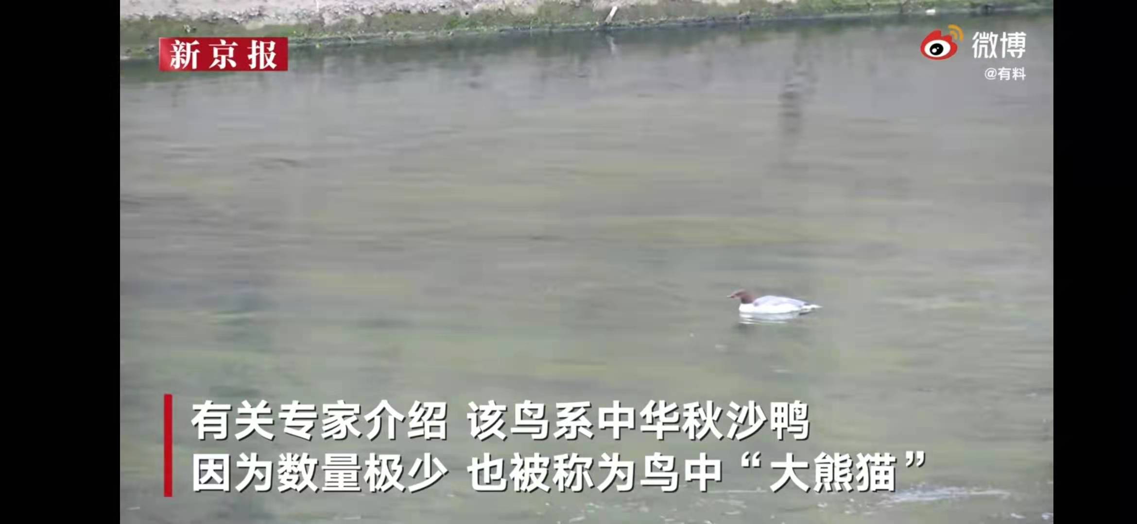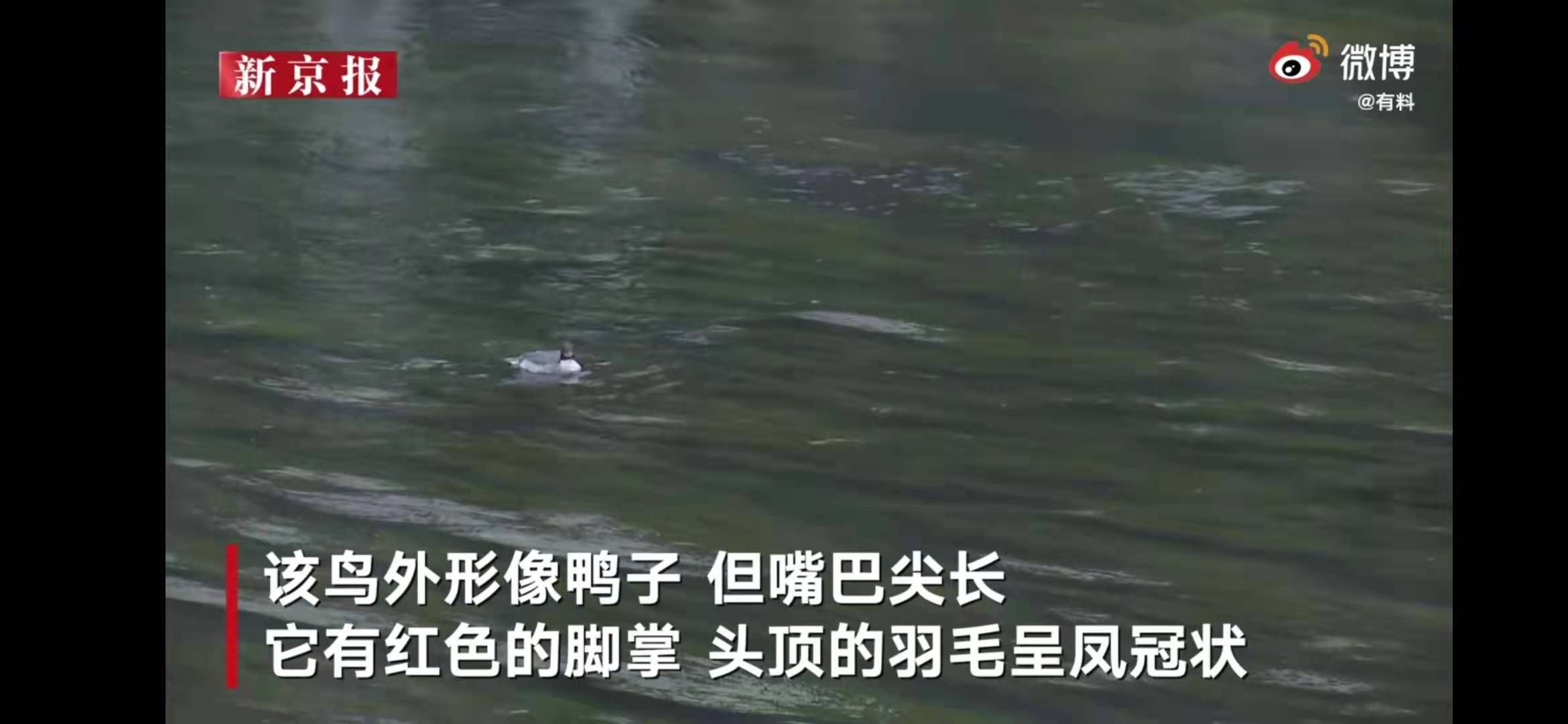 一只中华秋沙鸭出现在贵阳南明河。我们视频截图
