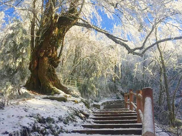 “今年下雪比较早,很多游客来九峰山看雪。”九峰山村民张红在登山口开了一家小卖部,她表示今年来九峰山的游客比往年增多,游客下山堵车堵到天黑。