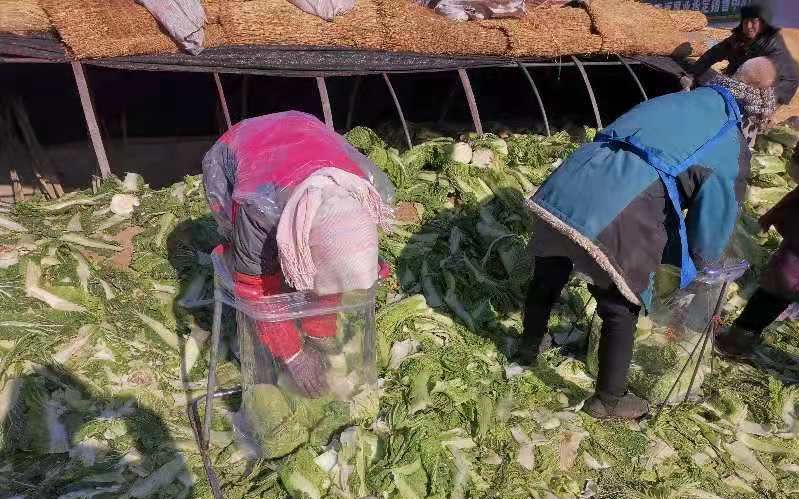 6日上午10点,室外气温只有零下11℃,河北省唐山市玉田县虹桥镇小丁庄村,农户们穿着厚厚的棉服,戴着手套,正从一个半地下式的菜窖里往外搬运白菜,一旁的几位农户对白菜进行简单的处理后,一棵棵新鲜的玉田白菜被装上车。