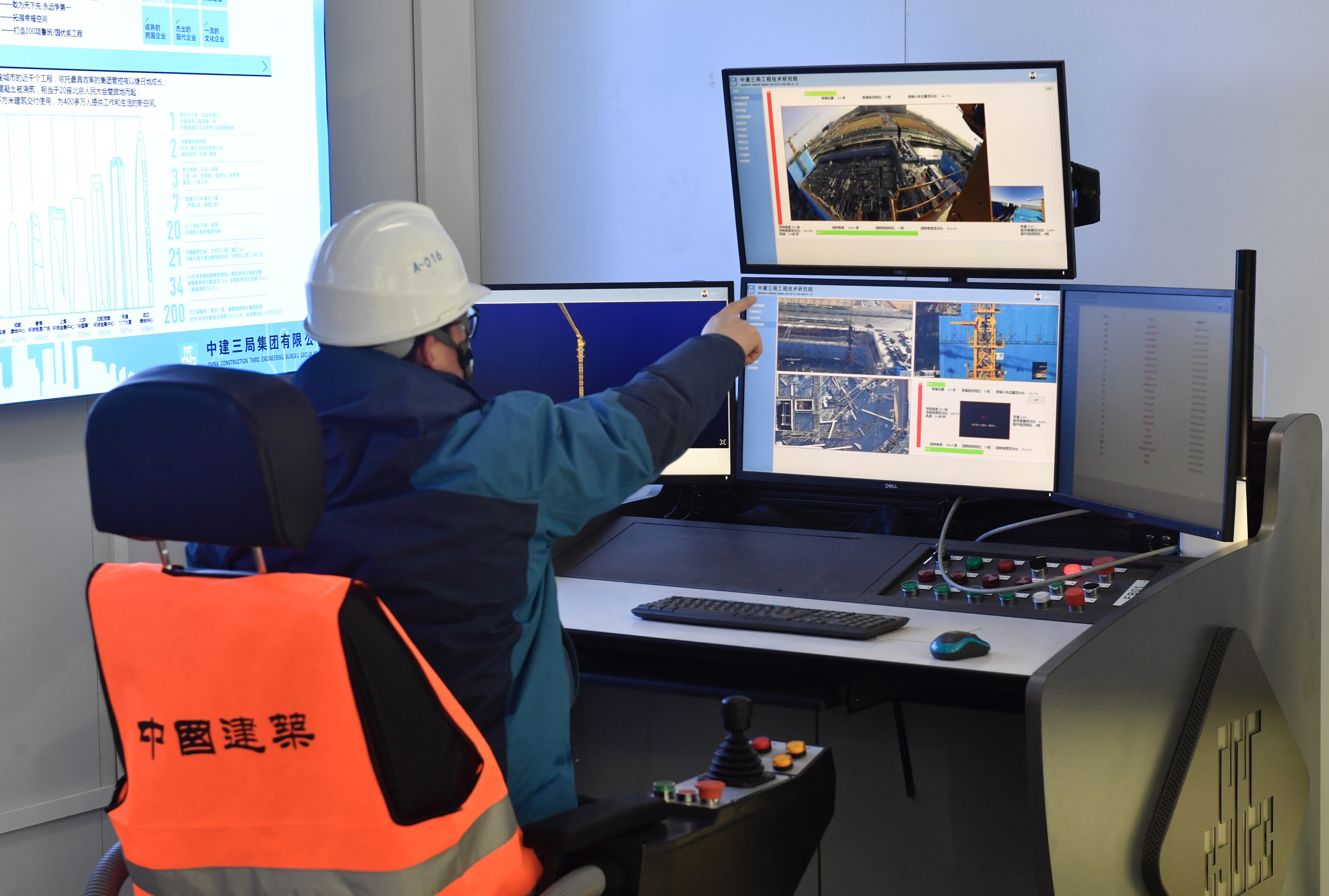 北京大兴国际机场临空经济区国际商务综合体的5G塔吊无人化远程操作系统。新京报记者 吴宁 摄
