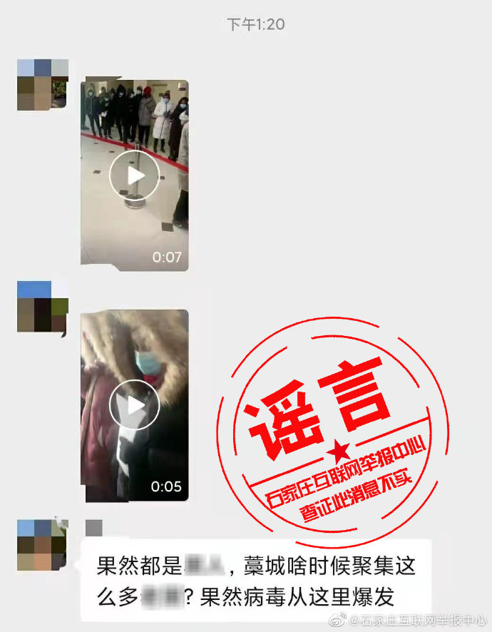 石家庄互联网举报中心提醒:疫情当前,请广大网民积极配合,理性看待,擦亮眼睛,不要以讹传讹成为谣言传播者,共同为疫情防控营造清朗网络空间。