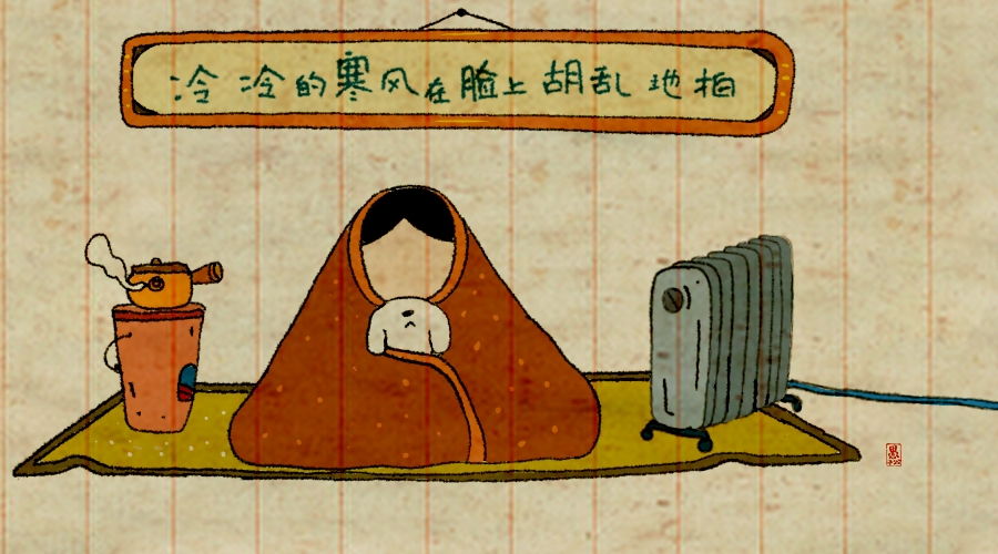 在这样寒潮降临的日子里,就只有靠抖取暖了……在屋子里面也一样充满了寒冷的空气的早晨,起床也实在是太难了。把秋衣塞到秋裤里,秋裤塞到袜子里……啊,在这寒冷的冬日,请把我永远埋在被窝里!