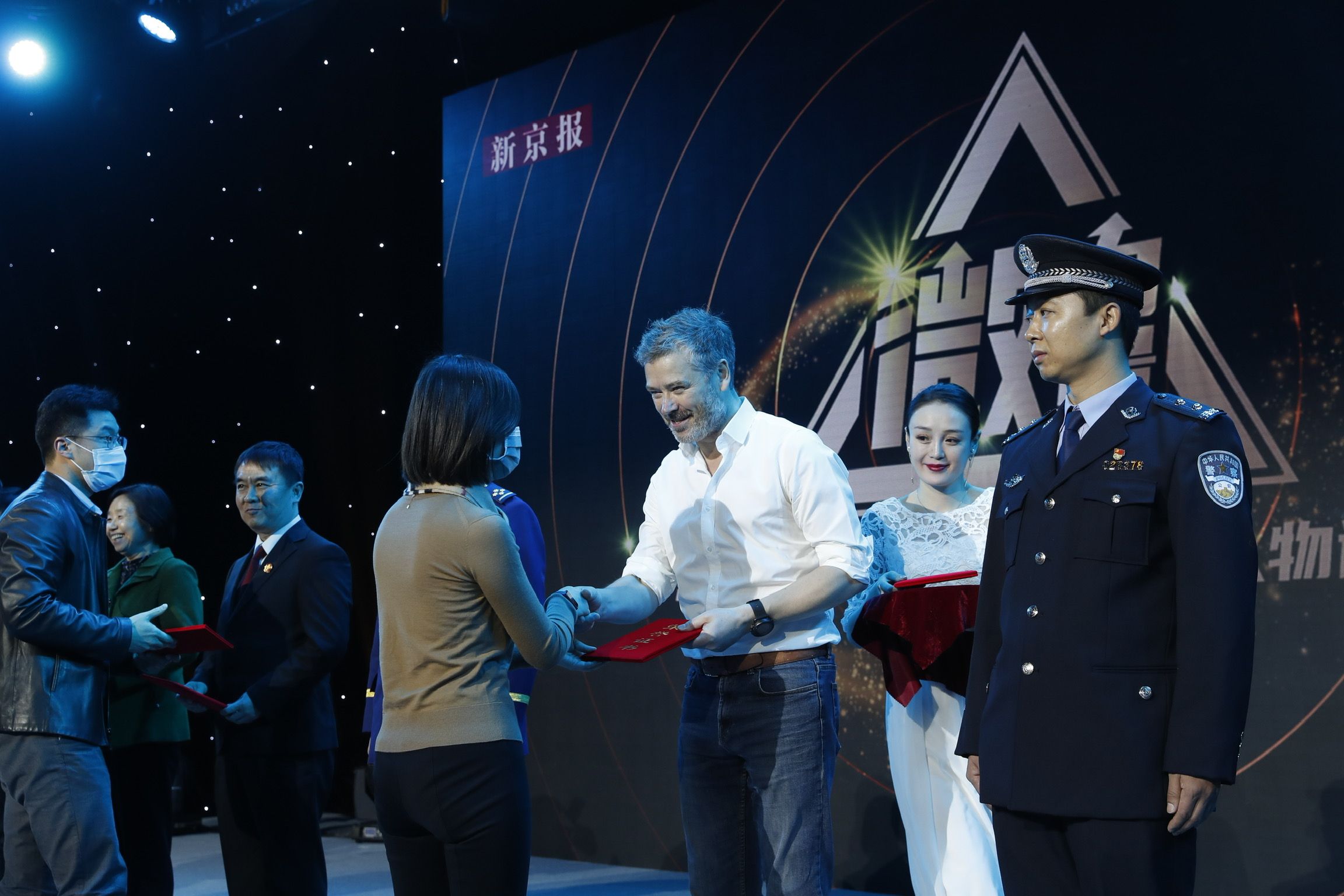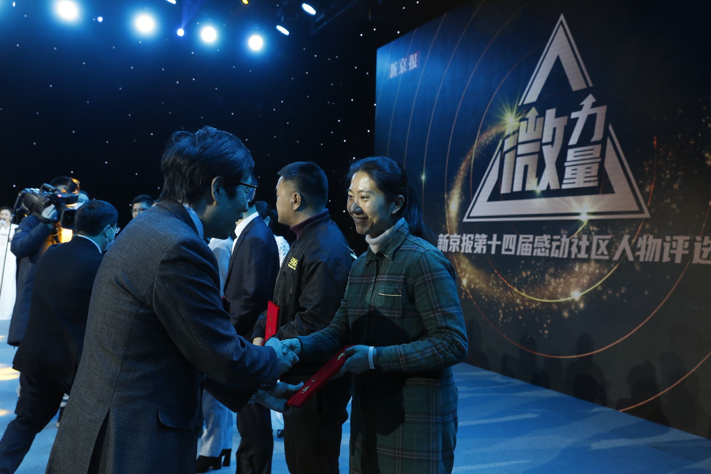 2021年1月8日,“微力量——新京报第14届感动社区人物评选颁奖典礼”现场,嘉宾为入围者颁奖。新京报记者 侯少卿 摄