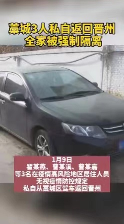 据晋州发布,1月9日,翟某燕、曹某溪、曹某嘉等3名在疫情高风险地区居住人员,无视疫情防控规定,私自从藁城区驾车返回晋州,对当前疫情防控工作造成较大的风险隐患。目前,晋州市有关部门已对翟某燕、曹某溪、曹某嘉及其家属共8人采取强制定点隔离的措施。隔离结束后,公安机关将依法依规对相关人员进行行政处罚。