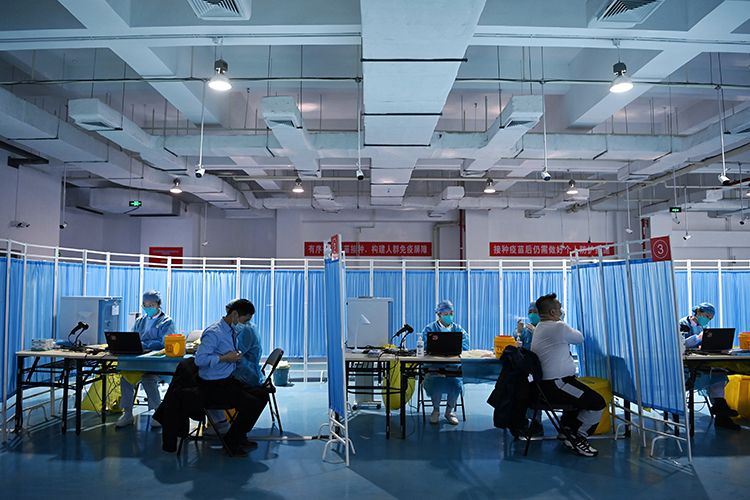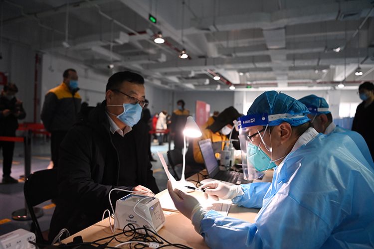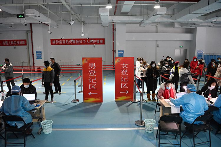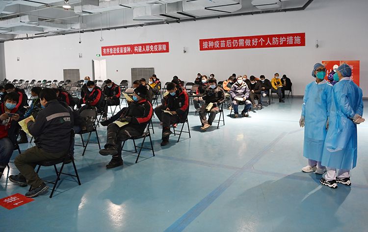 1月13日,丰台区丰体中心新冠疫苗临时接种点,医护人员正在为外卖、快递人员进行疫苗接种,预计今天将有2000名快递外卖人员完成疫苗接种。据了解,丰台区目前设立接种点50余个,自1月1日全面启动9类重点人群新冠疫苗接种工作以来,截至目前,累计接种新冠疫苗人数8万余人,接种工作正在平稳有序进行中。