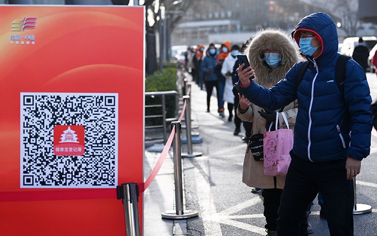 接种人员按照一米线排队,在进入接种点前,需测温扫码。