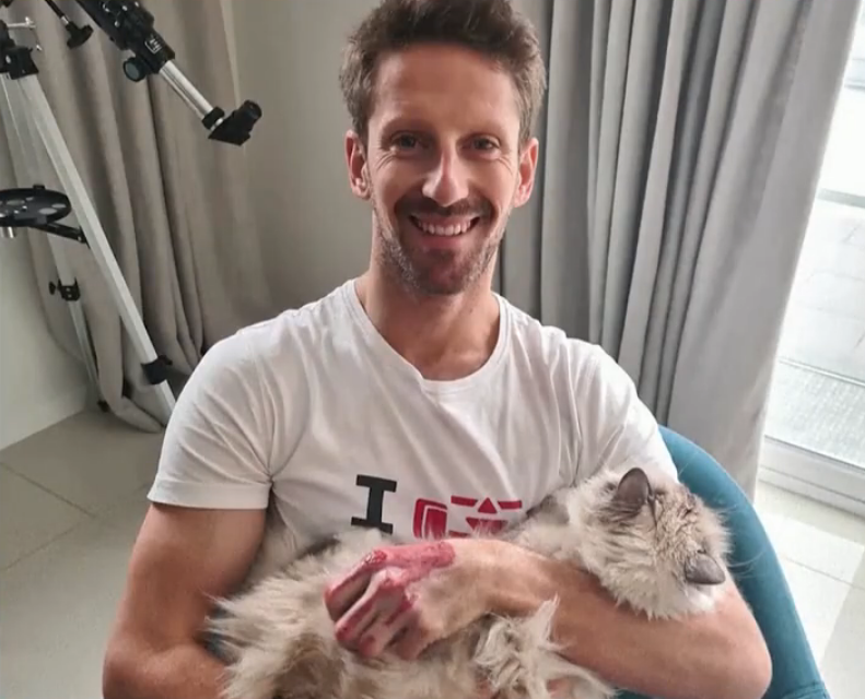 火海逃生后,F1车手格罗斯让首次晒手部伤情
