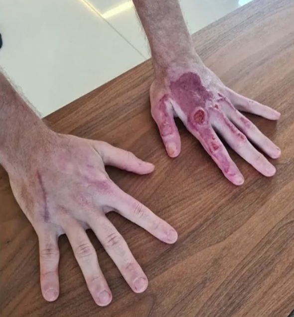 从大火逃生后,格罗斯让首次展示了受伤的部位,从照片中可以看出,法国人左手手背的伤势还是非常严重的。