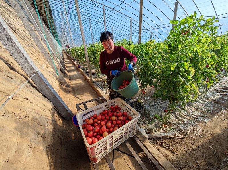 大棚里种植着西红柿陆续成熟。新京报记者 王巍 摄