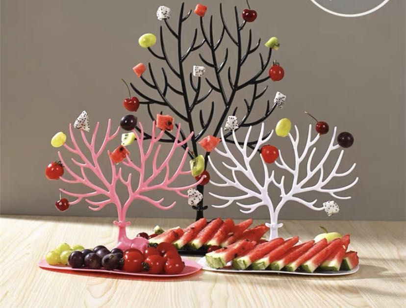 葡萄、车厘子、小番茄、西瓜丁、火龙果丁,这款创意树造型的果盘,不仅能把这些水果放在盘子里,还可以一颗一颗插到“树杈”上,打造一个属于自己的多彩“水果树”,在家体验边采摘果实边吃的乐趣。它不仅可以做果盘,还可以放置钥匙等小物件,不管怎么用都可以为你的家增添一抹亮色。