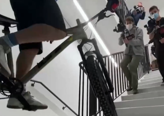 新京报讯 据央视网报道,当地时间17日,31岁的法国山地自行车赛冠军方特诺伊,骑自行车成功登上了巴黎商业区一座140多米高的大厦。整个挑战过程用时30分钟,方特诺伊全程骑在自行车上,总共爬了768级台阶,登上了这座33层楼高的三一大厦。