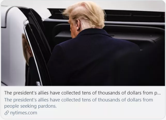 特朗普的盟友已经从寻求赦免的人那里赚取了数万美元。/《纽约时报》报道截图