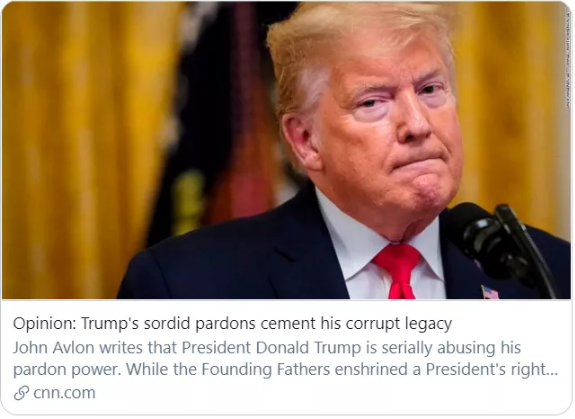 特朗普肮脏的赦免巩固了他腐败的政治遗产。/CNN报道截图
