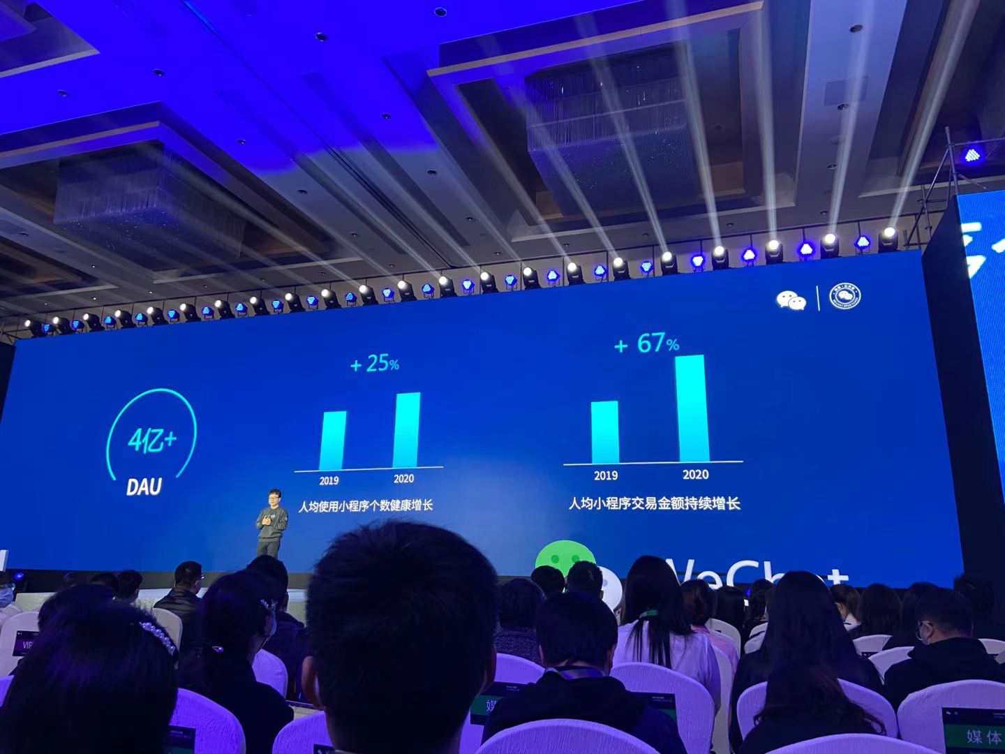 1月18日,2021微信公开课PRO在深圳上披露,目前小程序日活人数超过4亿。相比2019年,人均使用小程序健康个数增长25%,小程序交易金额持续增长67%,整体活跃小程序数增长75%,有交易小程序增长68%。2020年全年交易额增长100%