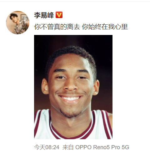 李易峰8时24分悼念科比,坦言起初很讨厌他