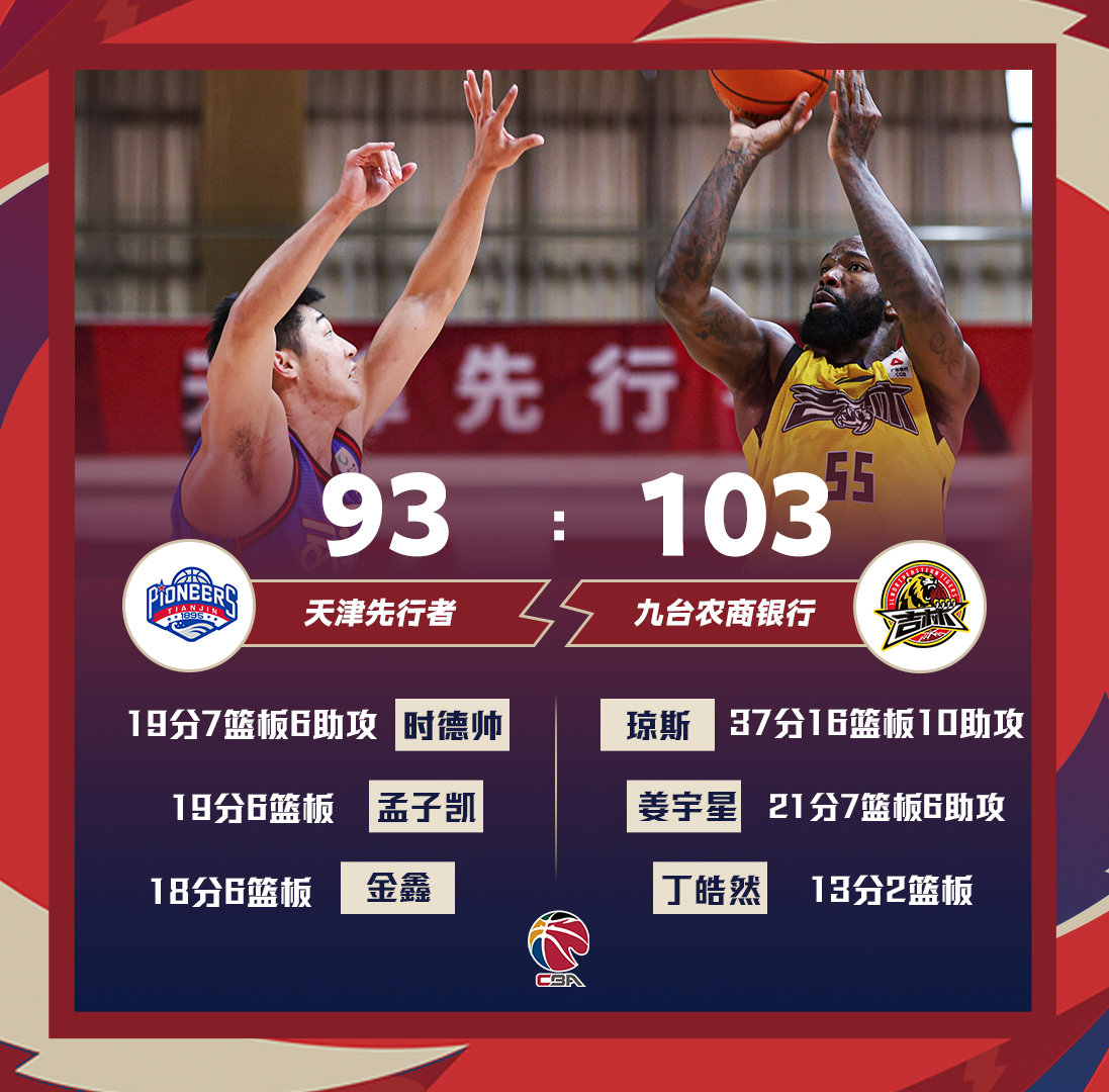 新京报讯 北京时间1月27日,CBA常规赛第35轮,吉林男篮以103比93战胜天津。