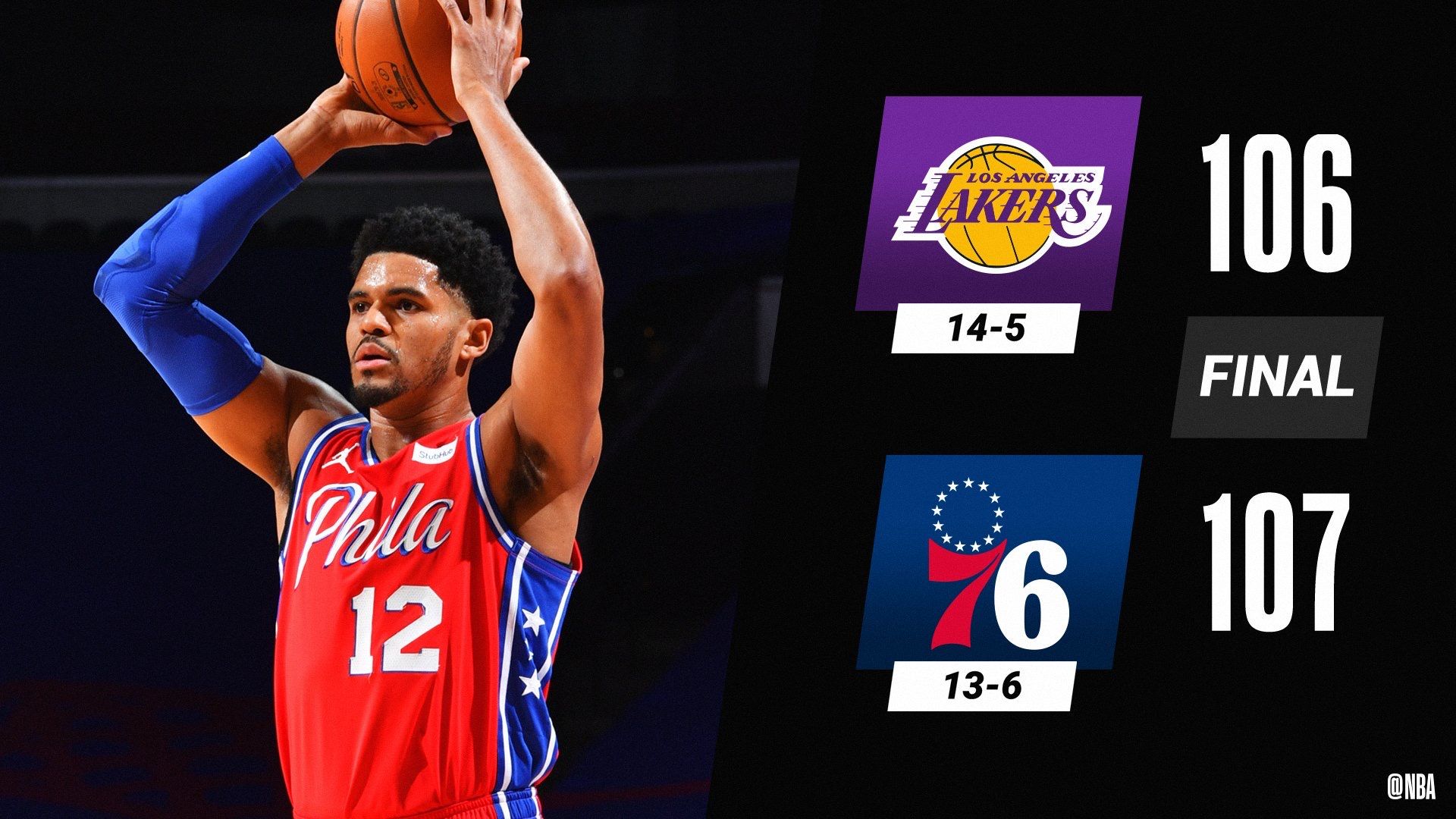 命中绝杀的哈里斯全场贡献24分、7个篮板;恩比德砍下28分、6个篮板;本·西蒙斯得到17分、11个篮板、10次助攻,这也是他本赛季首次拿到三双。湖人此前取得开季客场10连胜,创造队史纪录,如今被76人终结。